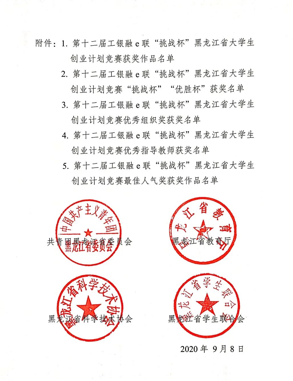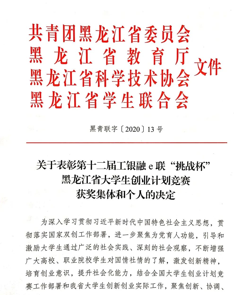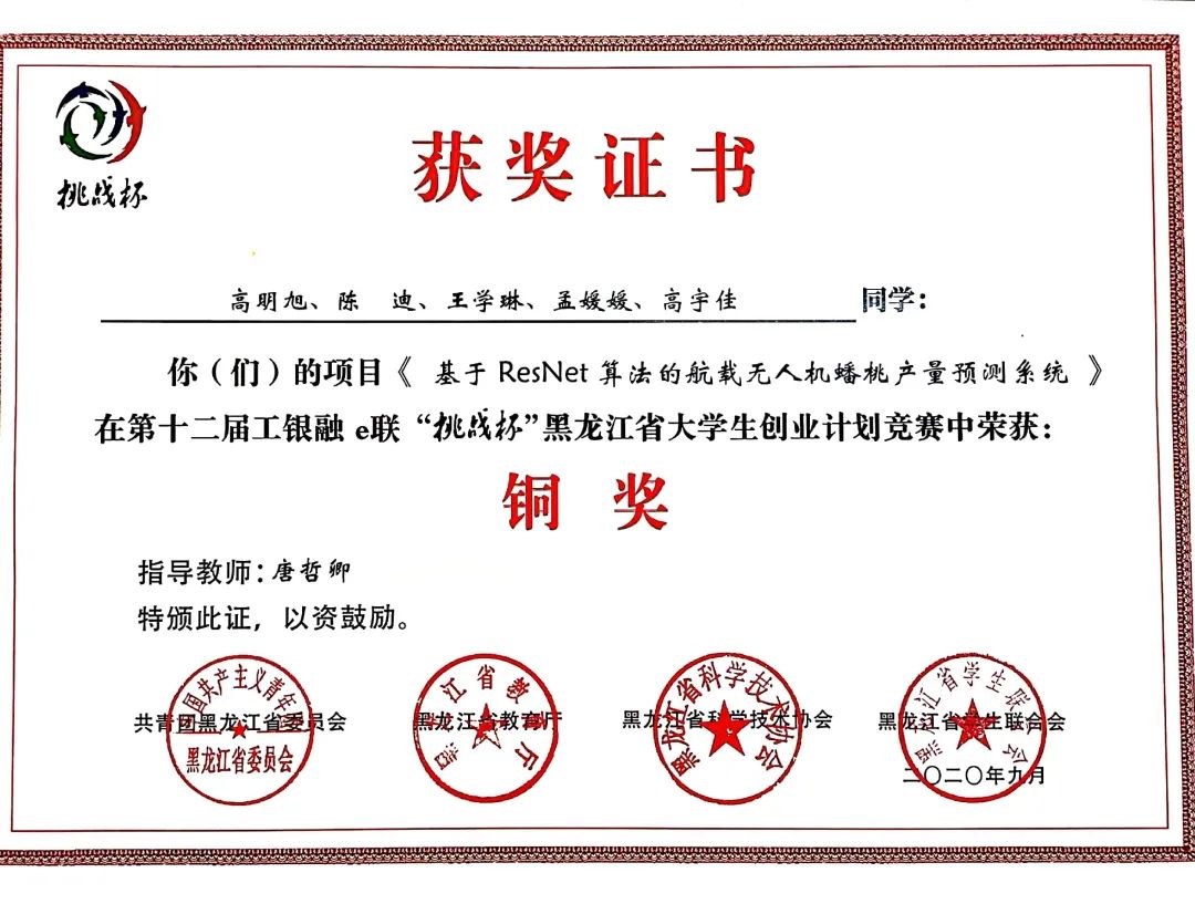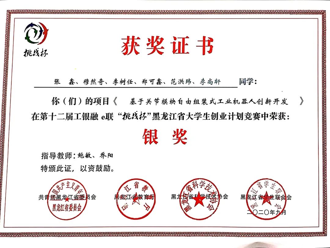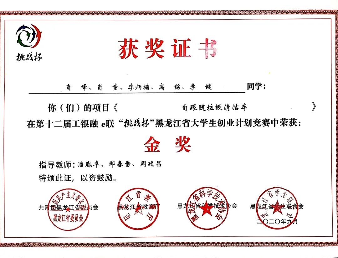 9月8日,团省委、省教育厅、省科学技术协会、省学生联合会联合印发了《关于表彰第十二届工银融e联“挑战杯”黑龙江省大学生创业计划竞赛获奖集体和个人的决定》(黑青联字[2020]13号)文件,在全省各高校209件作品入围决赛的作品中,永利官网参赛项目荣获大赛金奖4项、银奖2项、铜奖3项,有3项作品被推荐至国赛,由机械工程学院潘胤卓老师指导、肖童同学负责的《小型除冰机器人》项目以总票数排名第一的成绩荣获“最佳人气奖”,永利官网荣膺大赛“优胜杯”,创造了永利官网“挑战杯”参赛史最佳成绩。