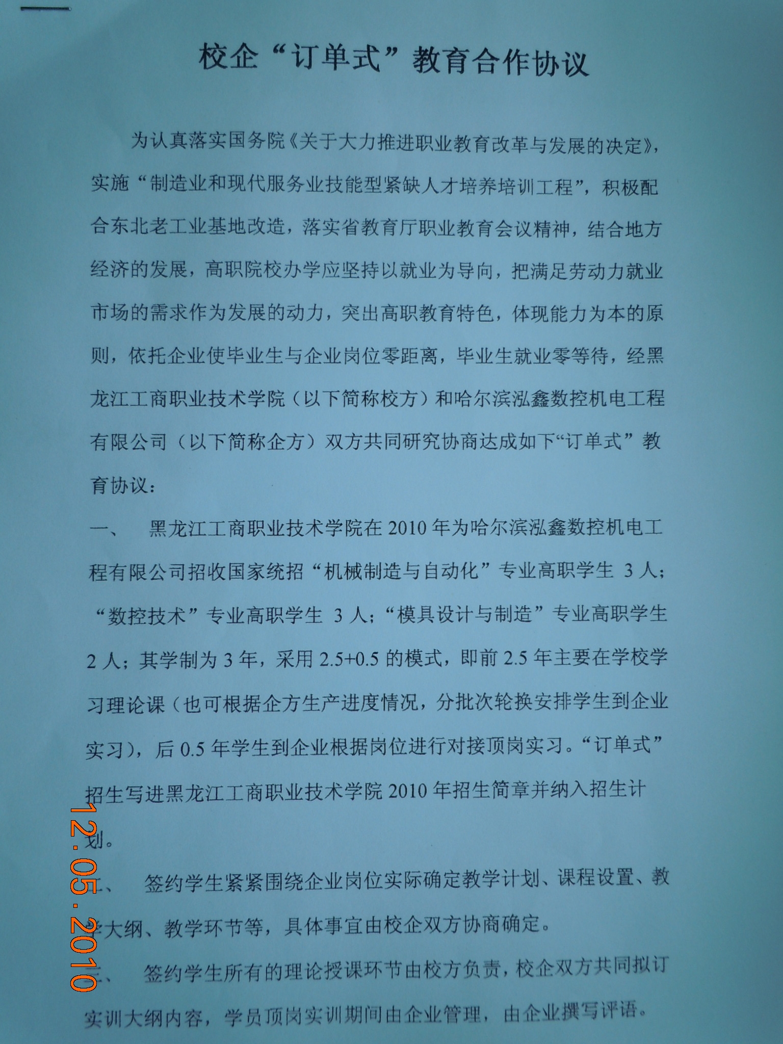 序号 合作单位 1 哈飞集团 2 哈建成机械厂 3 哈尔滨电机厂水电分厂 4 哈尔滨汽轮机厂 5 哈尔滨东安发动机集团 6 牡丹江天合集团 7 哈尔滨鑫北源电站集团 8 哈尔滨建成机械集团 9 三精制药 10 齐齐哈尔二机床 11 黑龙江省农业机械工程科学研究院 12 哈量数控刀具有限公司 13 世一堂集团 14 完达山集团 15 齐齐哈尔一机床
