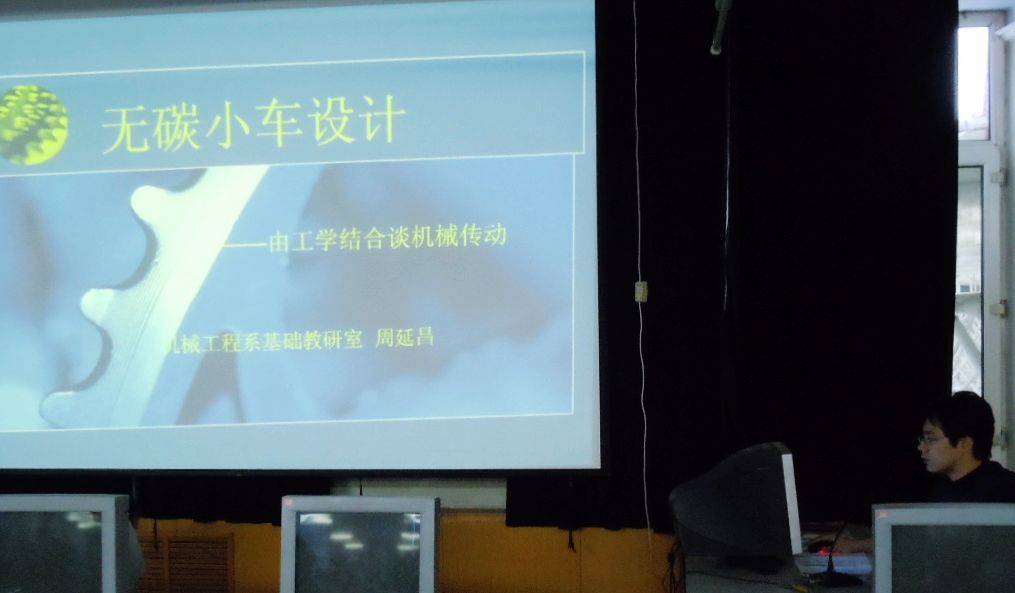 周延昌老师以全省工程实践大赛项目——“无碳小车设计”为题,介绍了机械设计基础在小车设计过程中的应用,通过小车实战的图片、视频分析了各种机构在实际运用时的综合考虑,此实例使学生真正体验到学以致用的乐趣,激发了学生的学习兴趣。