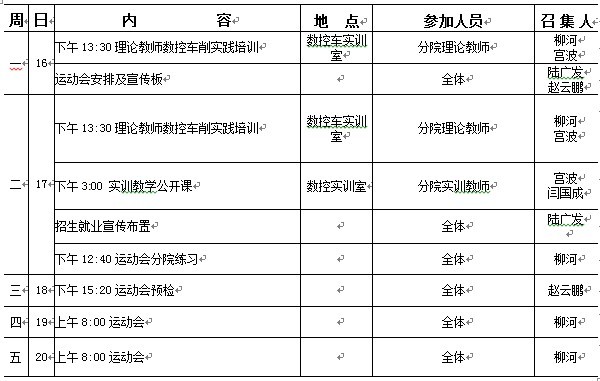 机械工程学院第十二周工作安排表