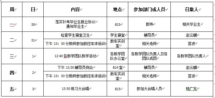 机械工程学院第十四周工作安排表