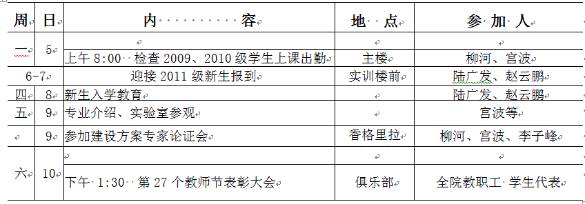 机械工程学院第一周重点工作推进表