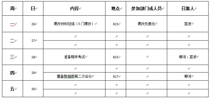 机械工程学院第十七周重点工作推进表