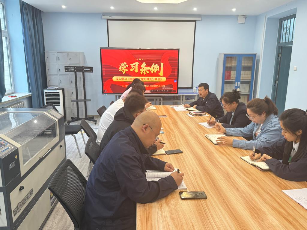 会议开始时,党支部书记李焕然致开场词。他着重指出了党纪在规范党员个人行为和党组织活动中的核心地位,并强调,每位党员都应时刻将党纪置于心头,自我约束,保持廉洁。接着,他对《中国共产党纪律处分条例》进行了全面而深入的解读,涵盖了条例的出台背景、主要内容,以及党员如何在岗位中切实践行等相关内容。在场的党员们全神贯注地倾听,并不时记下关键信息。