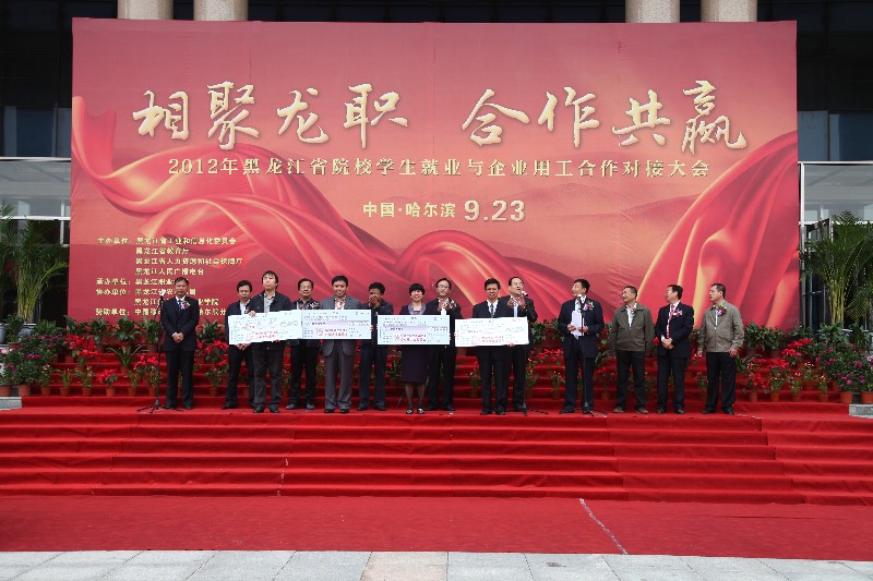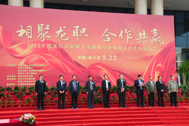 9月23日,由省工信委、省教育厅、省人力资源和社会保障厅、黑龙江人民广播电台联合主办,我院承办的以“相聚龙职、合作共赢”为主题的2012年黑龙江省院校学生就业与企业用工合作对接会在学院隆重举行。省工信委党组书记贲起利、常务副主任庞光明,省人力资源和社会保障厅副厅长董绍林,黑龙江人民广播电台专职编委韩巨生,省农垦总局副局长谭占龙,省教育厅学生处处长张明华,yl34511线路中心书记冯玉龙、院长赵继会,黑龙江信息技术职业学院院长武英举以及中国移动哈尔滨分公司党委书记、总经理潘景波出席大会。262家省内外重点骨干企业和省内101所院校代表及各高校应届毕业生参加此次会议。会议由省工信委纪检组组长王涛同志主持。