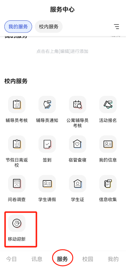 2025级新生同学在登录后进入个人页面后点击下方“服务”按钮,首次登陆时“服务”中的应用列表需要10-30秒的预加载时间,还请耐心等待。