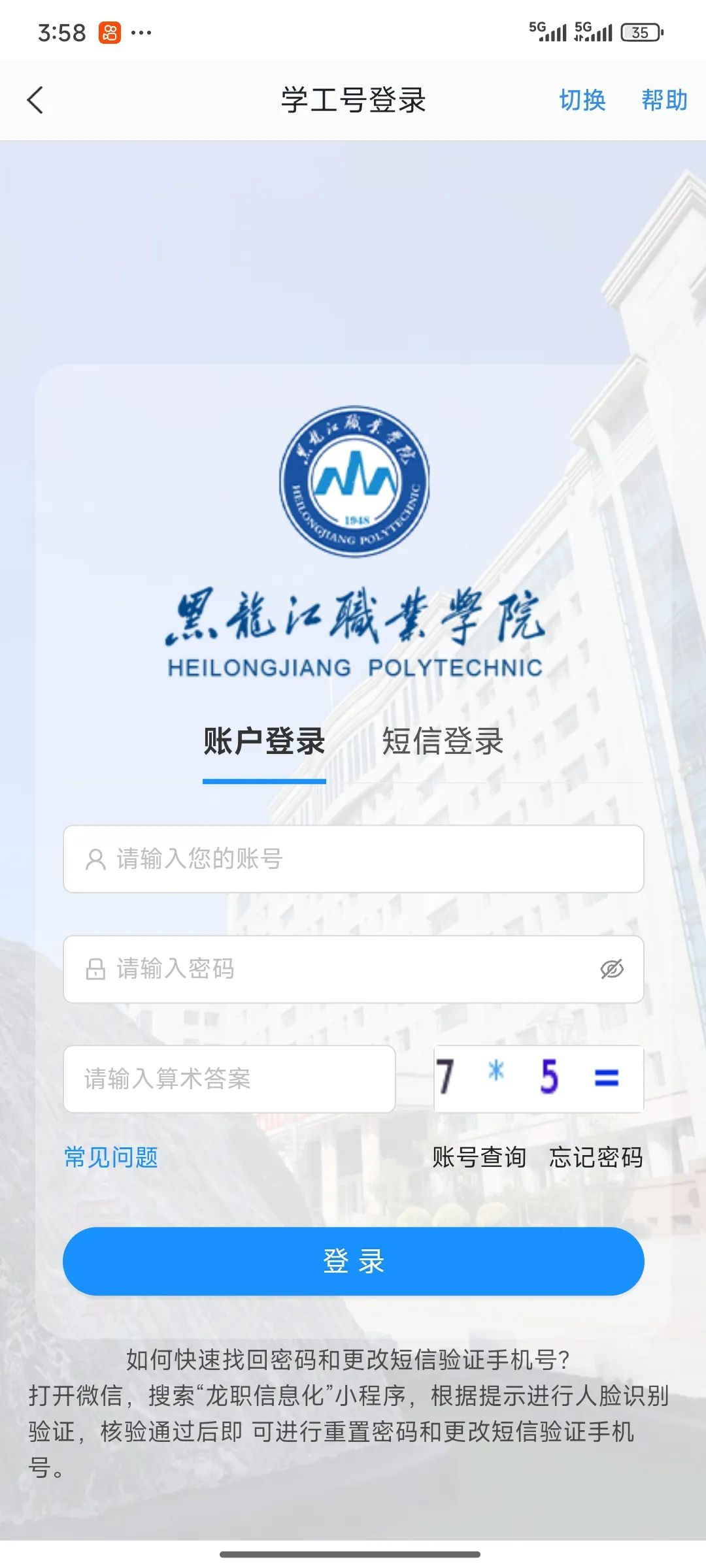 账号处输入学号及账户激活步骤时设定的密码,进行登录。