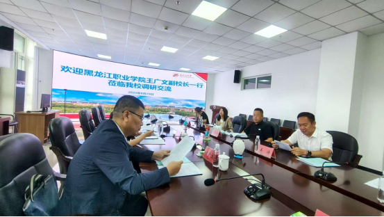 牡丹江大学副校长姜涛及相关职能部门负责人围绕调研主题,详细介绍了本校的相关项目设计、实施过程和阶段性成果,并分享了在推进产教融合、深化教学改革过程中遇到的挑战与思考。双方还就共同关注的教育教学热点、难点问题进行了热烈而深入的讨论。