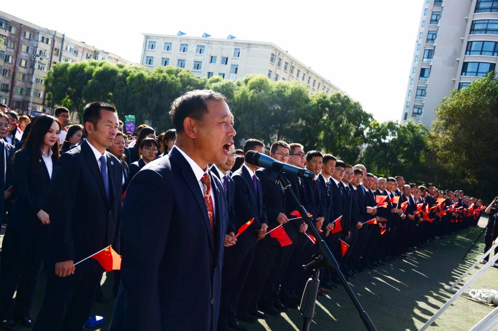 当日,学校党委书记赵继会宣布大合唱开始,副校长郑福贵主持。学校运动场上,鸣放礼炮,奏唱国歌,五星红旗迎风飘扬,师生手举国旗,共同唱响了《我和我的祖国》《歌唱祖国》《龙职之歌》。之后,大家高喊“不忘初心,牢记使命”“自强有为,兴业报国”,并传递国旗,放飞气球。师生们歌声嘹亮,激情万丈,饱含对祖国的爱,对远大理想的追求,敞开胸怀,纵情高歌,唱出英雄气概,唱出心中豪迈,展现了党员领导干部勇当先锋、做好表率的积极风貌,展现了学校师生员工热爱祖国的家国情怀,以及为黑龙江建设发展奉献青春热血的信心与担当。