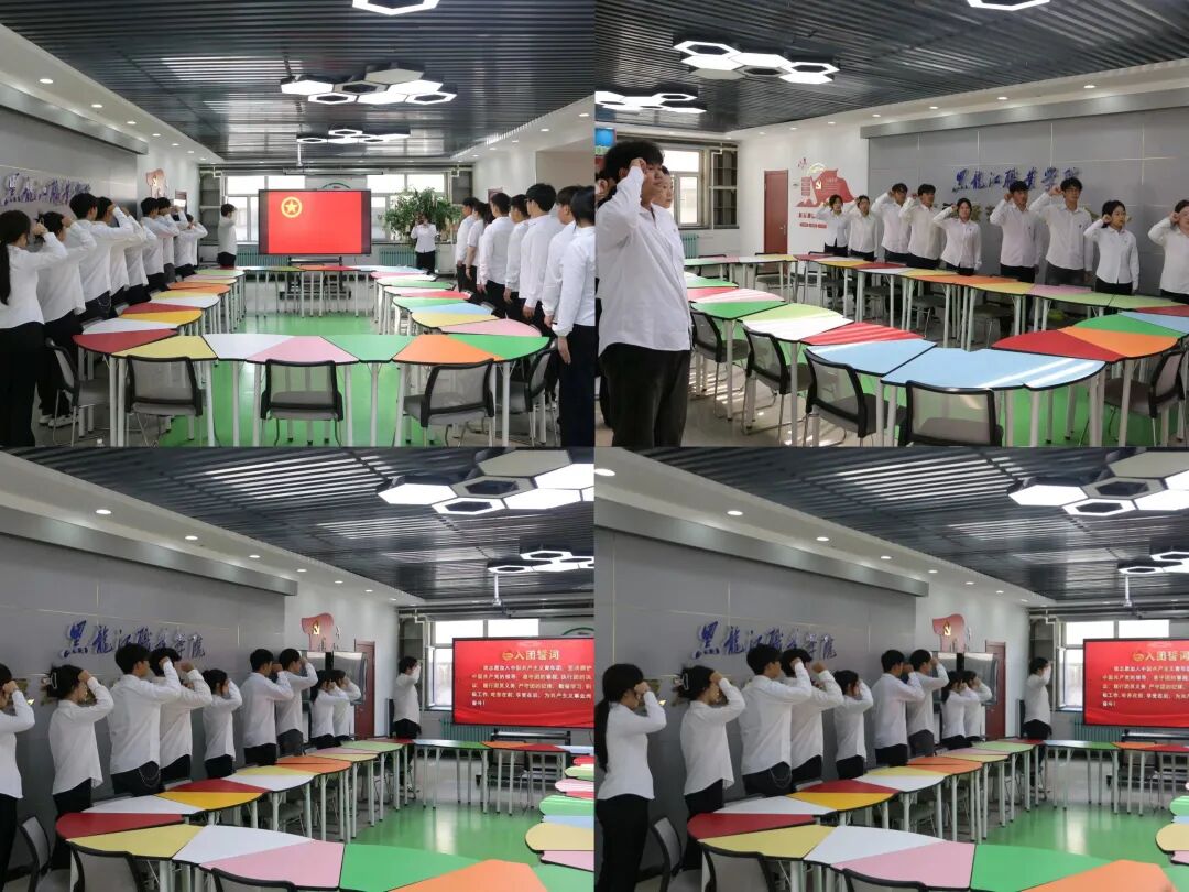 “纪念中国人民抗日战争暨世界反法西斯战争胜利80周年大会” 直播结束后。现场同学凝视鲜艳的共青团团旗,大家郑重举起右拳,以洪亮坚定的声音宣誓,声声誓言,是对初心的回溯,更是青年学子传承先辈精神、扛起强国使命的庄重承诺 。 重温誓词,让入团热忱再涌心间,将爱国情融入成长,用实际行动践行“请党放心,强国有我”的青春誓言。