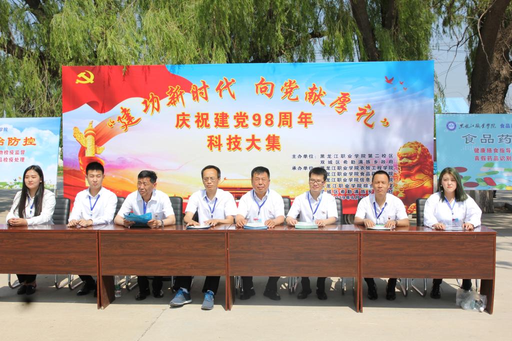 6月24日,由学校第二校区和双城区希勤乡联合主办,农牧工程学院、食品药品学院、信息工程学院、综合办公室、双城区希勤乡希勤村承办的“建功新时代·向党献厚礼”庆祝建党98周年科技大集活动在希勤村举行,yl34511线路中心副院长孙福忠,双城区希勤乡政府乡长胡祥辉,第二校区相关部门负责人、希勤乡村两级班子成员、希勤村全体村民及周边10个村屯近1500人参加活动。