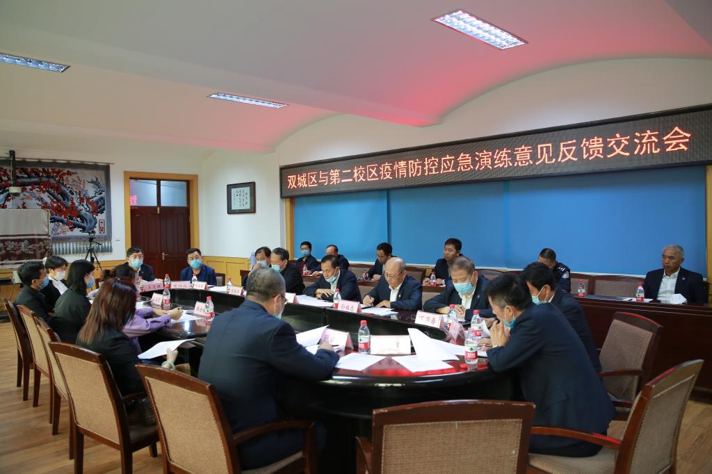 演练结束后,召开疫情防控应急演练意见反馈交流会。会上,综合办对第二校区开学前复学复课准备情况进行了详细汇报,双城区相关部门领导对应急演练给予了充分的肯定同时提出了专业的指导意见。