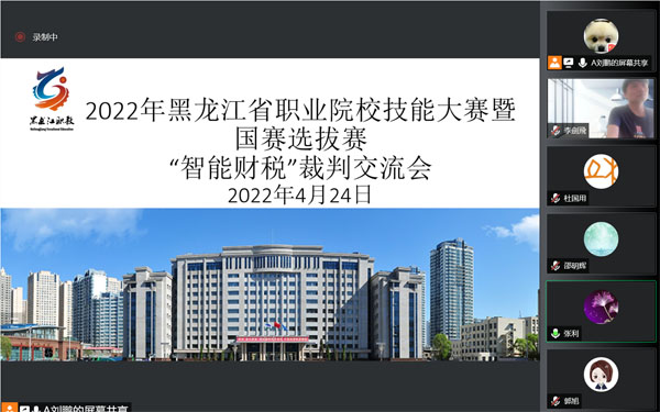 4月25日,由黑龙江省教育厅主办、中联集团教育科技有限公司协办、我院承办的黑龙江省职业院校技能大赛暨国赛选拔赛(高职组)“智能财税”赛项顺利拉开帷幕。赛项采用线上比赛方式进行,全省共有16所院校、64名选手参加比赛。