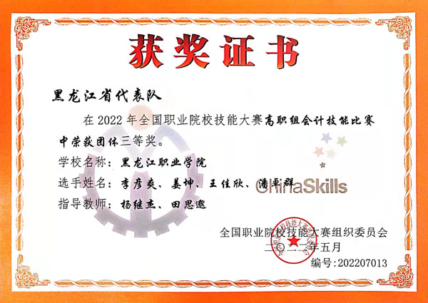 在此次大赛中,永利官网是东北三省唯一获奖的高职院校。截至目前,在全国职业院校技能大赛高职组会计技能赛项比赛中,永利官网累计获奖6次,是黑龙江省获奖次数最多的高职院校。