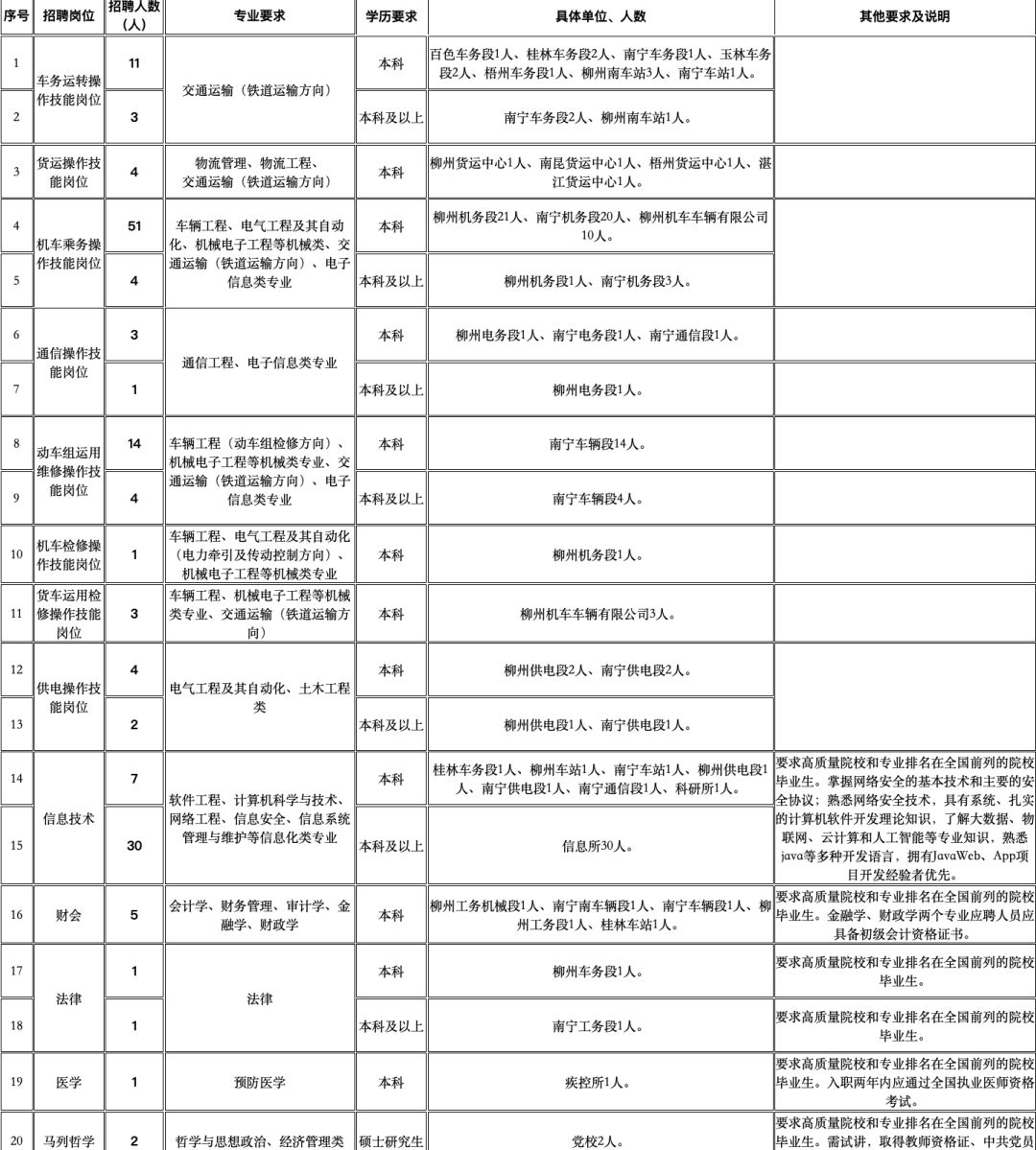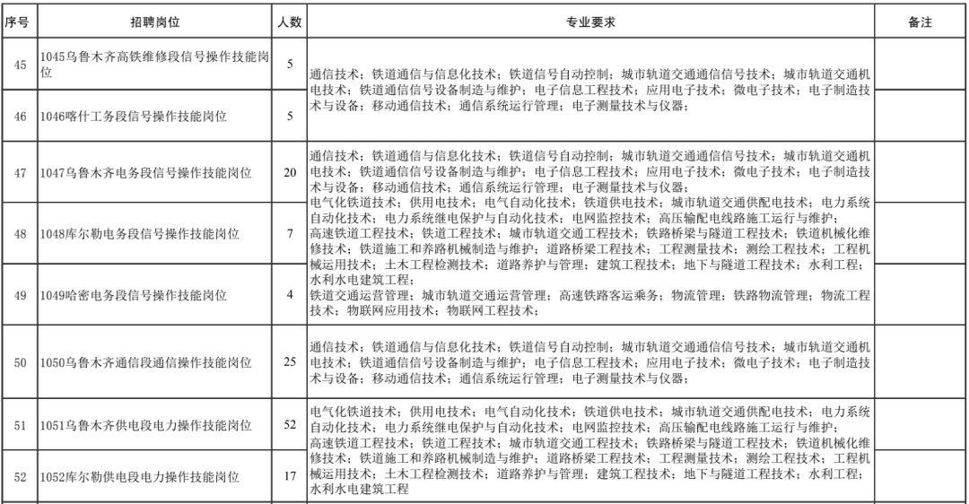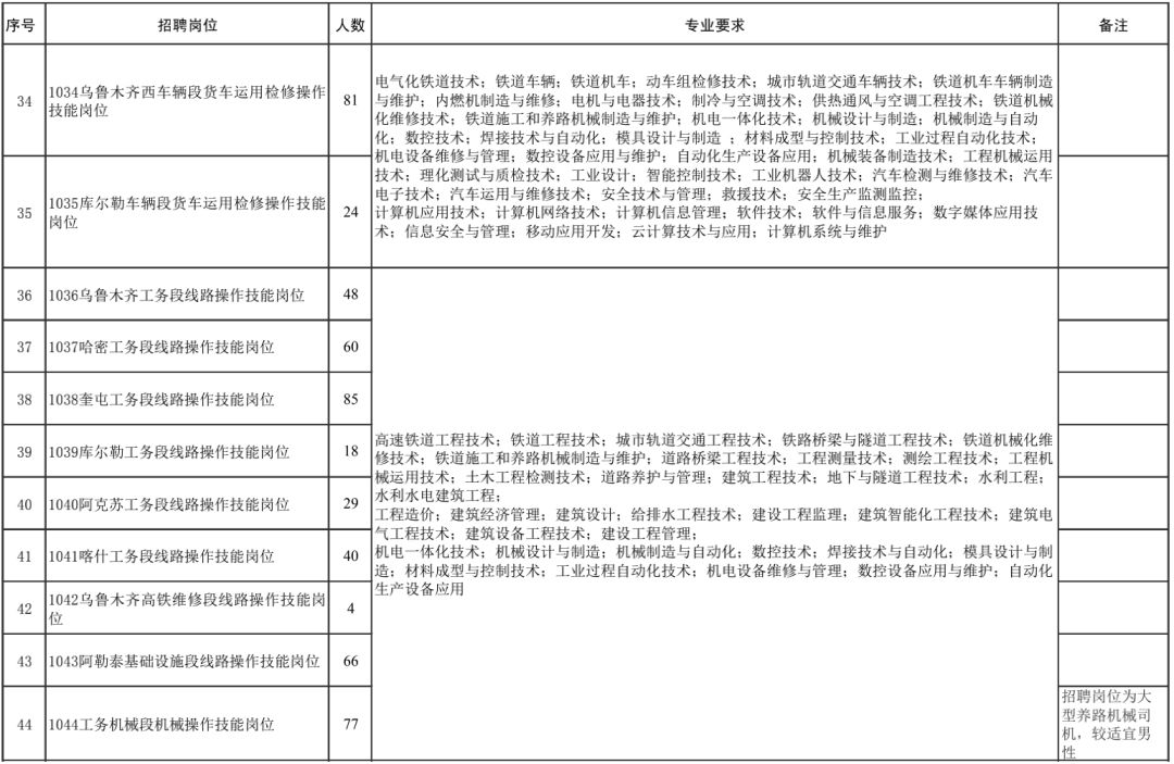 (1)应聘序号为1-13的岗位:要求铁路主专业毕业生在校期间所学专业方向为铁路专业方向或所学主要课程中包含铁路专业课程,相近专业为高质量院校毕业生;