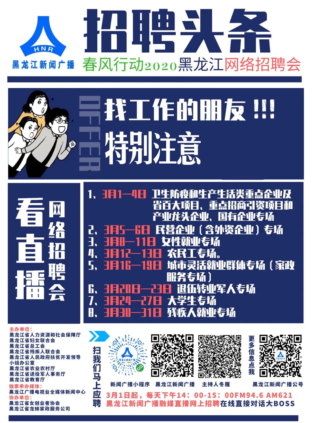 ►@高校毕业生:“建功龙江大学生凝聚行动”黑龙江省2020年高校毕业生春季网络招聘系列活动来啦!不容错过!