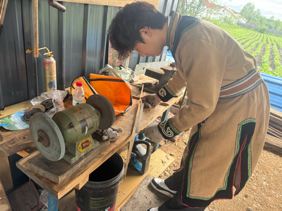 一艘艘迷你桦皮船、一件件狍皮大衣……走进国家级非遗传承人郭宝林家中,浓郁的民族风情扑面而来。“出生在呼玛尔河一带,从12岁开始,我始终在做两件事——传承桦树皮船制作技艺,深挖鄂族文化。”郭大师一边向实践团讲述着他与桦皮船的不解之缘,一边演示桦皮船制作的核心流程。