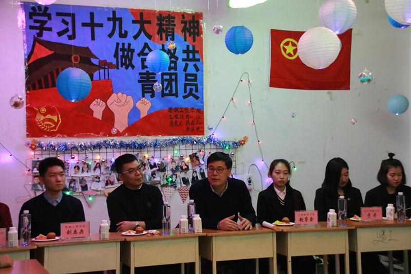 11月14日晚,建筑工程学院2017级工程造价一班在主楼715教室组织开展了以“学习十九大精神,做合格青年团员”为主题团日活动。副校长郑富贵同志以兼职班主任的身份深入班级,参加了该班的主题团日活动。