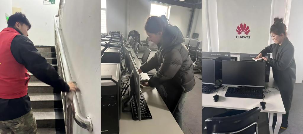 活动重点对校园周边、操场、食堂、教室及实训室等人流密集区域进行全面清扫。志愿者分组协作,手持清洁工具,细致清理路面落叶、绿化带杂物及卫生死角,并对公共设施进行擦拭维护。团结互助的正能量无处不在。参加此次活动的志愿者纷纷表示:“弯腰捡拾垃圾虽是小事,但能让龙职校园更美丽,这就是雷锋精神的生动体现”。