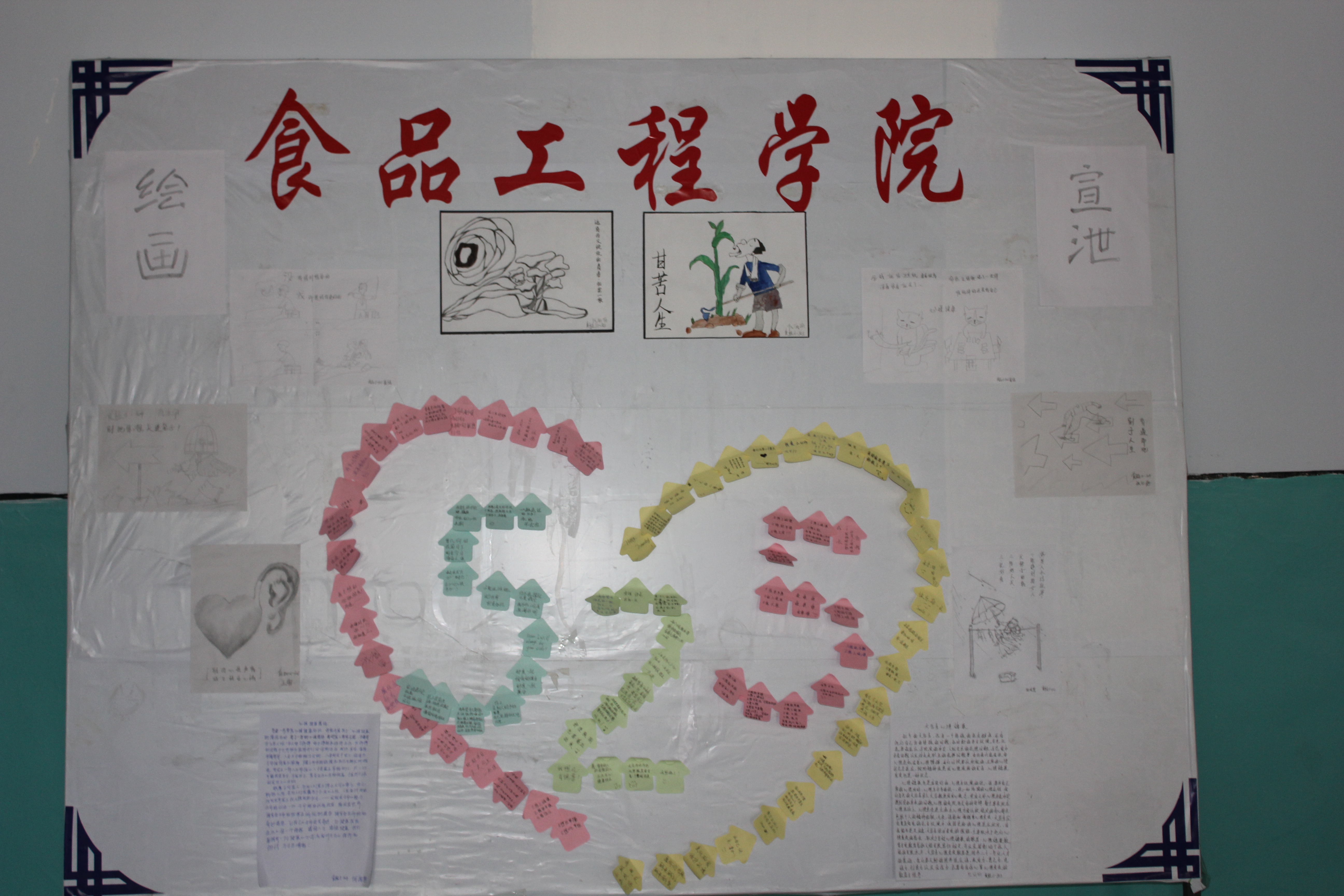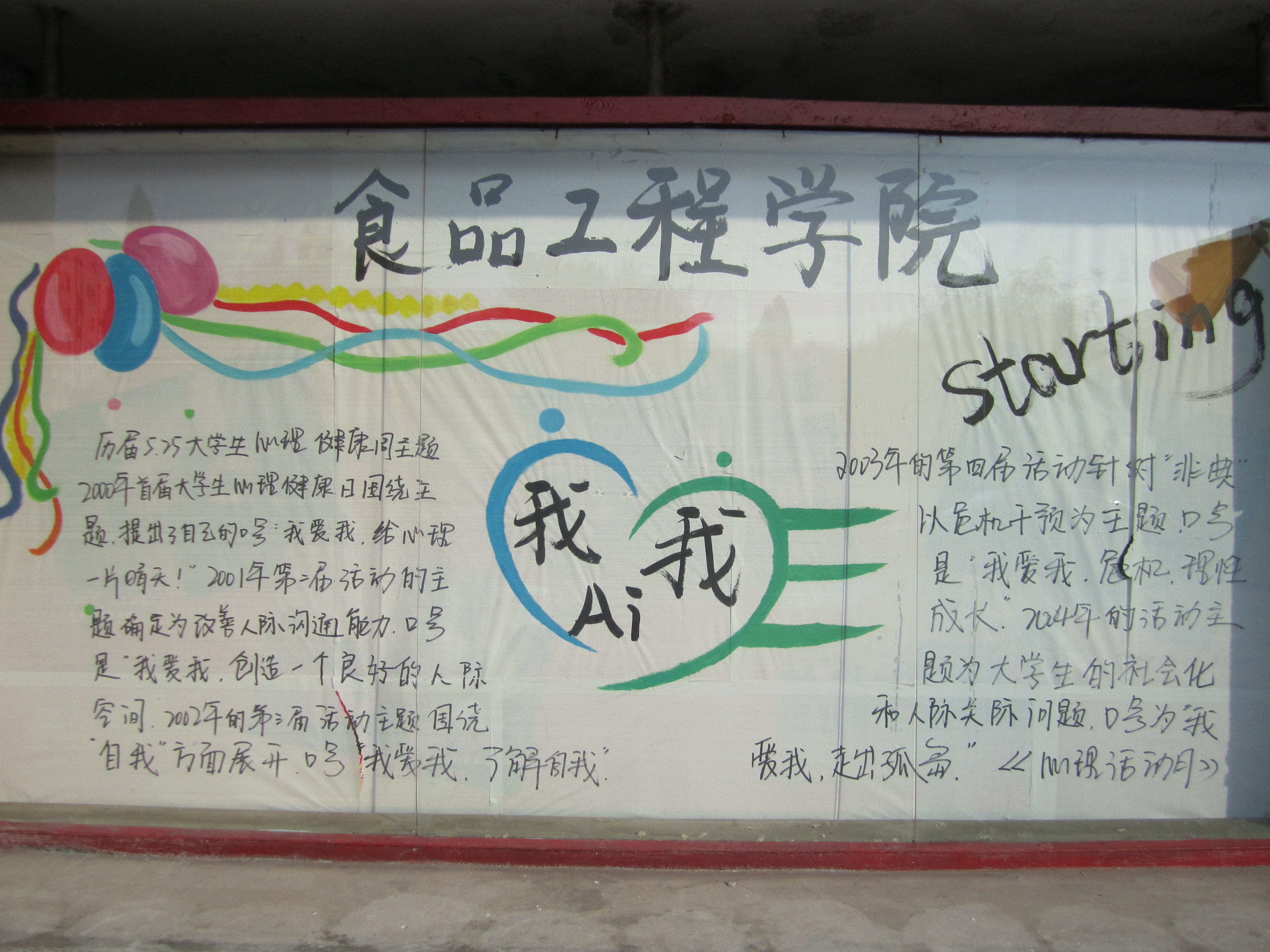 我院通过向各班级宣传动员征集心理作品,让同学们在小卡片上写下自己经历过的最幸福、最感动一类的瞬间,收到20于份不同程度的作品。最后于5月25日展现在展板上,展出的作品,围成一个几何图形,中间用同学们签写的便利贴,围成一个心形标注着“5.25”,受到老师同学们的一致好评。