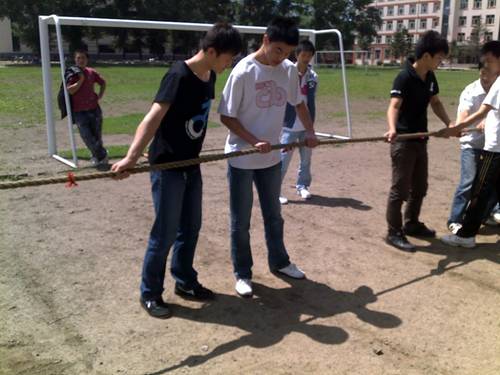 为了庆祝“国庆、校庆60周年”庆典的即将来临;为了推进素质教育建设、推动我系校园文化建设,6月22日,我系举办了“迎国庆,校庆”拔河比赛。