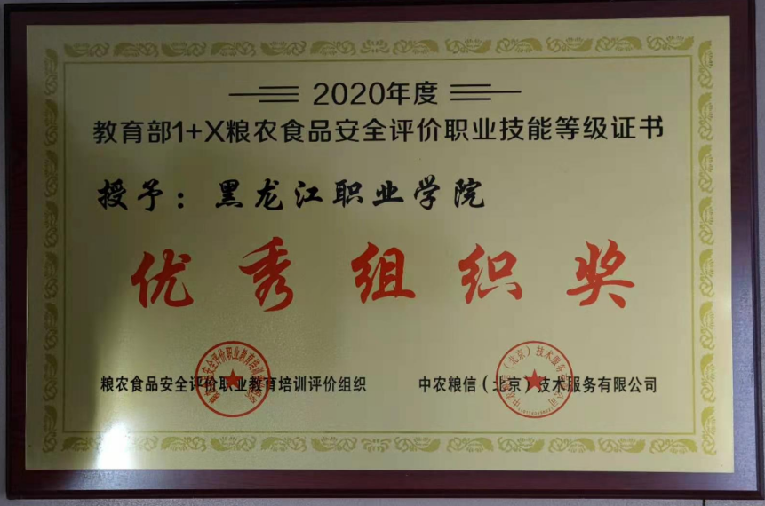 考核结束后,评价组织相关工作人员来到了我院与院领导及相关专业教师开展了会谈,并对学院在考核评价过程中的高度认真负责的态度给予了很高评价。我院也将一些较为成熟的经验分享给了评价组织。在随后召开的2020年度粮农食品安全评价职业技能等级证书总结表彰大会上,我院被授予领军院校奖和优秀组织奖。这两个奖项的获得,充分说明了在1+X证书的工作中,食品药品学院在丁原春院长的带动下,以科学合理的组织形式、认真负责的工作态度保质保量的完成了考核评价工作。随着1+X证书考核工作的进一步开展,我院也将继续以饱满的工作热情和为学生铺就未来职业坦途的认真态度奋战在课程改革、课证融通的第一线上!