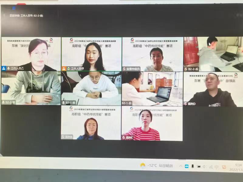 2022年12月10日,由黑龙江省教育厅主办、yl34511线路中心承办的2023年黑龙江省职业院校学生技能大赛暨国赛选拔赛(高职组)“中药传统技能”赛项在yl34511线路中心圆满落下帷幕。此次比赛共有来自省内10所高职院校的共20名选手参加。由于疫情防控的特殊情况,承办院校严格执行省教育厅的指示精神,最终将今年的黑龙江省职业院校技能大赛暨国赛选拔赛(高职组)“中药传统技能”赛项定为线上形式,所选用的平台为腾讯会议,比赛时长历时1天。