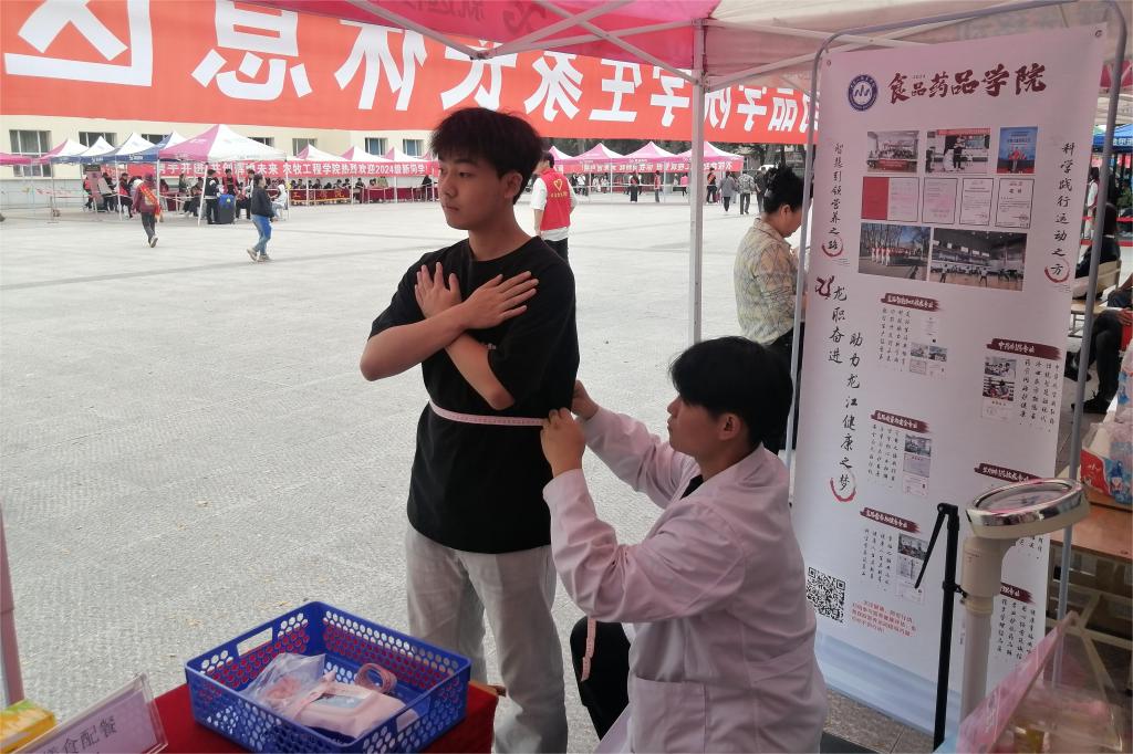 活动现场洋溢着浓厚的专业氛围和温馨的迎新气息。体质测试与评估区域,先进的专业仪器有序排列,食品营养与健康专业的师生们如同一群严谨的科学家,熟练而专注地操作着仪器,为新生和家长们进行着全面而细致的身体指标测试。膳食营养调查与评估区域,一份份精心设计、涵盖全面的问卷,如同打开了解每一位参与者饮食与生活习惯的神秘钥匙。咨询师生团队面带微笑,以亲切和蔼的态度与新生和家长们耐心交流。他们的每一个问题都充满关切,每一次解释都细致入微,让每位新生和家长都深深感受到了专业的感染和家的温暖。