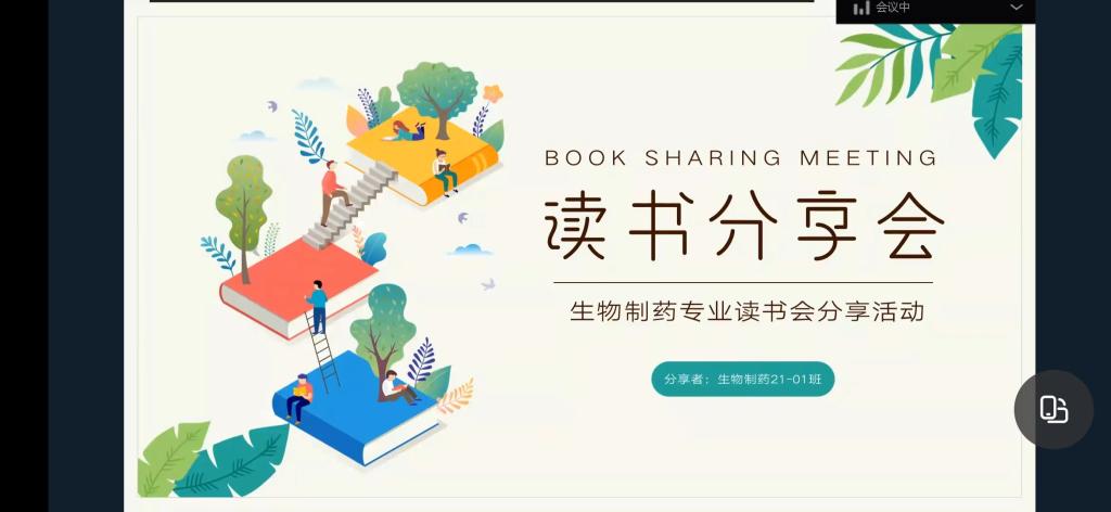 为进一步推动我院教育教学工作,营造崇尚知识、热爱阅读的浓厚氛围,生物制药技术专业于2022年5月8日14:00组织开展了一次别开生面的“云端”读书分享会。本次活动由新媒体中心主任、生物制药技术专业2020级学生付莉琪主持,生物制药技术专业教研室主任徐美佳、生物制药21-01班班主任崔畅出席本次活动,生物制药21-01班全体学生参加,本次分享会在线上以钉钉平台为依托开展。