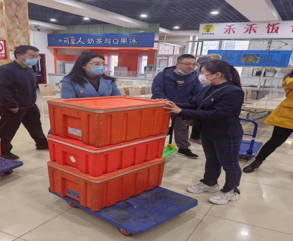 马院取餐送餐工作组的任务由徐瑛、徐永慧、张旭、秦晶娟四位同志承担。面对每天上百份的餐食搬运工作,巨大的体力消耗,四位女同志毫不迟疑,巾帼不让须眉,用行动保卫着龙职校园的疫情防线,用爱心守护着龙职师生的健康安全,用龙职精神感染者更多的身边人。