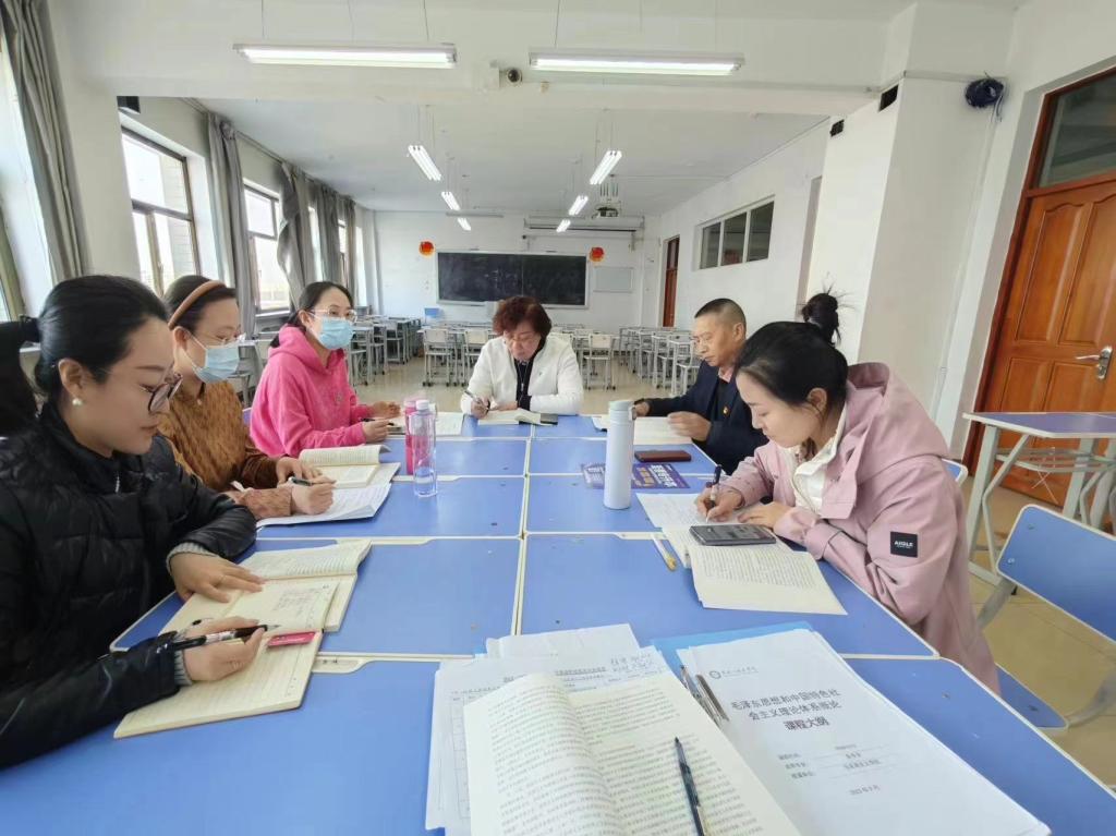 为持续提升教师的教学能力,保证《毛泽东思想和中国特色社会主义理论体系概论》课的教学质量,3月22日,教研室主任孔令声主持召开了本学期第二次集体备课会,马克思主义学院党总支书记程刚莅临指导,全体授课教师参会。