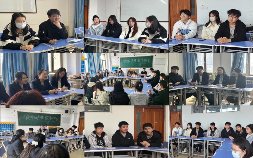 为进一步了解学生学习思政课的情况和需求,打造学生真心喜爱的有高度、有深度、有温度的思想政治理论课,4月10日,形势与政策教研室召开了以“倾听心声教学相长”为主题的师生座谈会。形势与政策教研室全体教师及各专业学生代表参加了座谈会,会议由教研室主任杨洋主持。