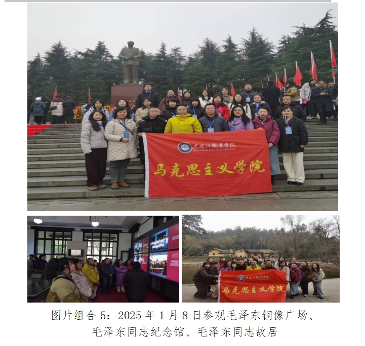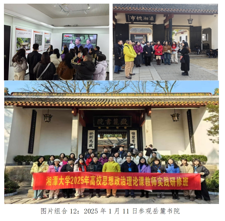 为贯彻落实习近平总书记关于思政课建设的重要指示精神,推动思政课建设内涵式发展,2025年1月6日至12日,我院思政课教师赴全国高校思想政治理论课教师研修基地(湘潭大学)开展寒假实践研修,传承红色基因、赓续红色血脉,力争在授课中用好红色资源,讲好红色故事。
