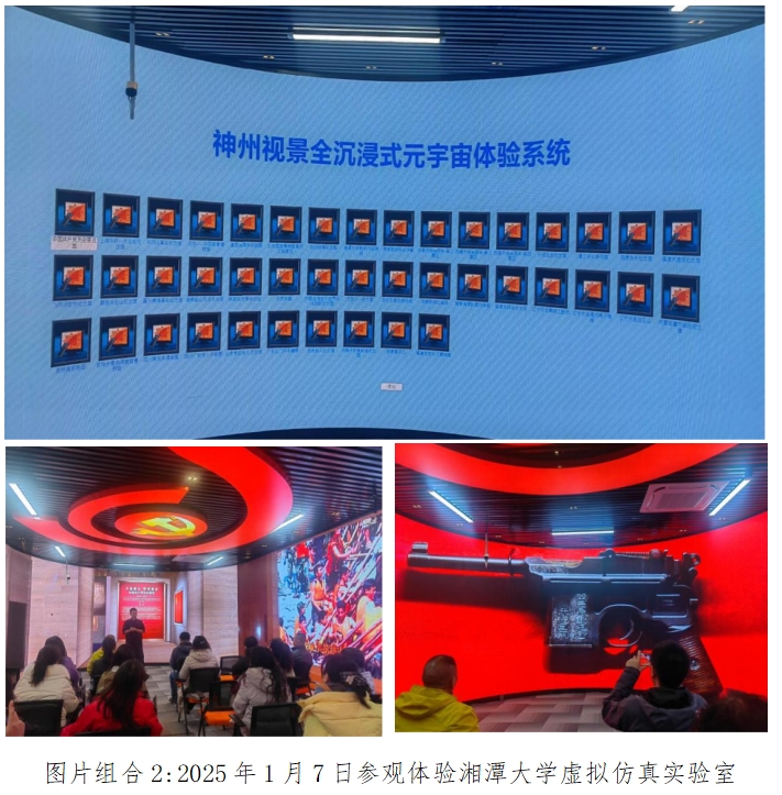 学员们参观了湘潭大学马克思主义学院全国首批“大思政课”实践教学基地——360度“四史”虚拟仿真实验室,体验了一场“沉浸式”的思政课堂。虚拟仿真实验室采用实地场馆建模,120多个教学点和7条固定线路,深刻感受了思政课实践教学与虚拟仿真实验室相互配合,推动红色资源从“指尖”到“心尖”。