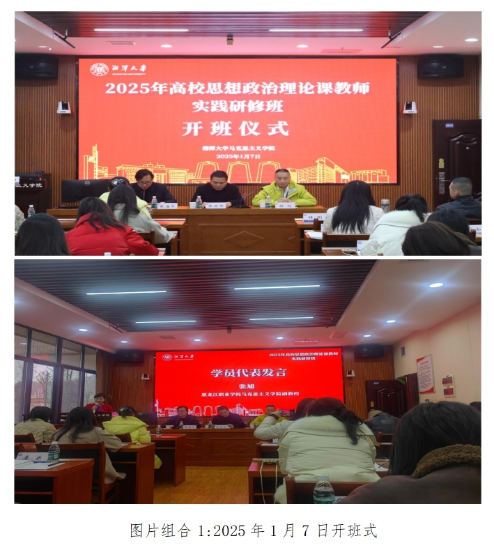 1月7日上午举行开班式。开班式上湘潭大学马克思主义学院党委书记张佑祥致辞,介绍了湘潭大学、马克思主义学院建设情况。永利官网马克思主义学院党总支书记程刚介绍了yl34511线路中心以及马克思主义学院建设情况,强调要以此次研学为契机,真学真听真信,学有所获。我院张旭老师作为学员代表作表态发言,表示学员们定会珍惜此次研修机会,将服从管理,遵守研修纪律,学有所获。