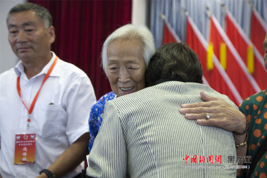 7月13日,日本遗孤代表与中国养父母相拥