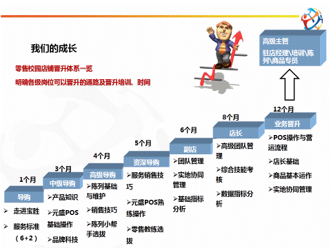 自七月起推广校园店铺计划以来,店铺指标达成均得到了稳步的提升,为了帮助学生更快的成长,为了更好的使校园店铺项目进行,企业将品牌规划管理部、物流部\工程部、商品规划管理部、运动城管理部\行政部、营运规划管理部、财务部共六个部门与三家店铺绑定,进行部门协助店铺。配合各部门店铺跟进事宜,企业同时开展了大学生试点店铺国展、锦绣、百盛提升奖励计划,奖励计划最高预算费用总计16500元,发放时间及形式:每月以奖金形式打入获奖店铺员工工资卡中。