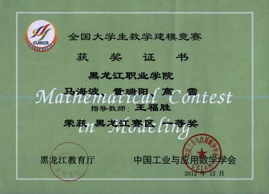 2012年全国数学建模大赛获奖情况公布,yl34511线路中心三支代表队分别获得黑龙江赛区一、二、三等奖。