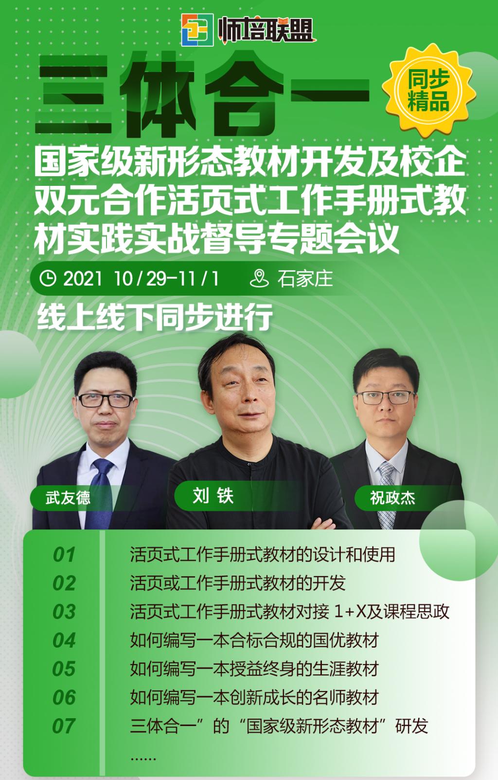 会上由祝政杰教授分享活页式和工作手册式教材开发,思路和理念、如何对接1+X、如何进行课程思政都是值得我们青年教师去学习和领悟;武友德教授通过分享活页教材或工作手册式教材开发案例、生动形象的讲解了如何编写一本合标合规的国优教材、如何编写一本受益终身的生涯教材;刘铁教授分享“三体一合”的“国家级新形态”教材研发,通过职业教育与普通教育的对比、职业教育的逻辑起点、三教改革等多重角度进行讲解。通过此次会议,我们青年教师对以后的教师生涯编写教材任务有了更加清晰的认知,也知道任重而道远,希望我们再接再厉,争取做出国家级的活页式教材。