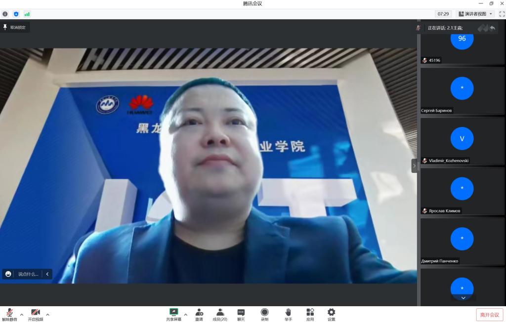 本次培训由计算机网络技术专业教研室主任曹立志进行了简短的开班式发言,然后进行了技术培训,主要培训内容为我院与华为共同开发的路由交换课程内容,共有50名俄罗斯远东联邦大学的师生参与了本次线上培训。培训结束后,俄方师生对技术问题进行了提问,我方详细耐心的进行了解答。