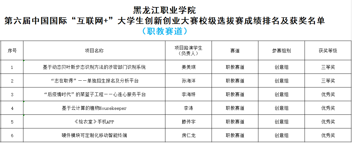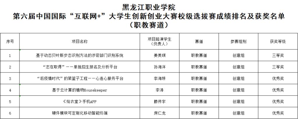 在“职教赛道”中,我院共获得2个三等奖和4个优秀奖,获奖队伍分别为: