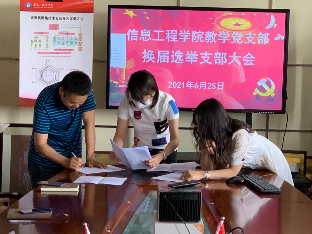 选举阶段,会议审议通过《信息工程学院教学支部委员会换届选举办法》,表决通过监票人名单并宣布计票人名单。按照学校党委批复的5名教学支部委员会候选人名单进行差额选举,选举出4名新一届教学支部委员会委员。
