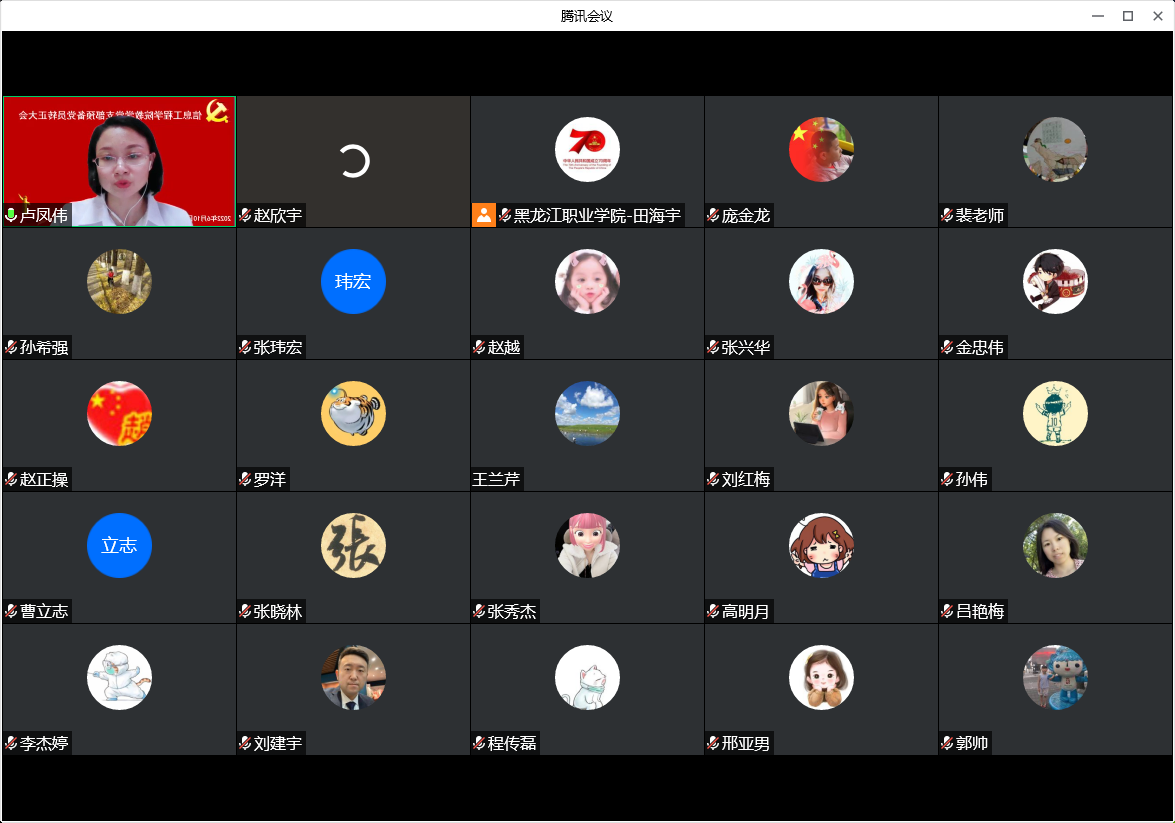 2020年6月10日星期五晚18:00,我院信息工程教师党支部于腾讯会议线上召开预备党员转正会议,会议讨论关于庞金龙、赵欣宇两名同志申请转正为正式党员。出席此次会议的有我院党总支书记金忠伟同志,院长张晓霖同志,副书记赵玉桥同志以及教师党支部全体党员同志。
