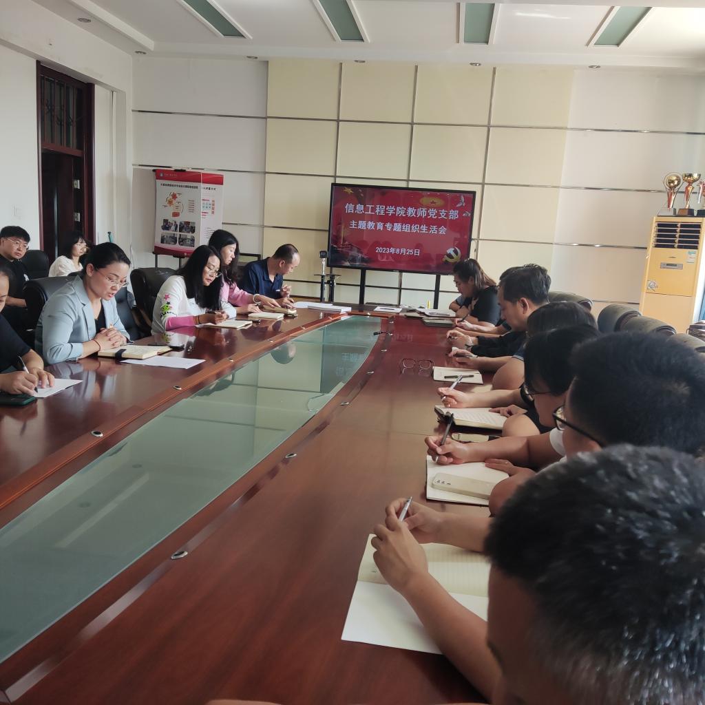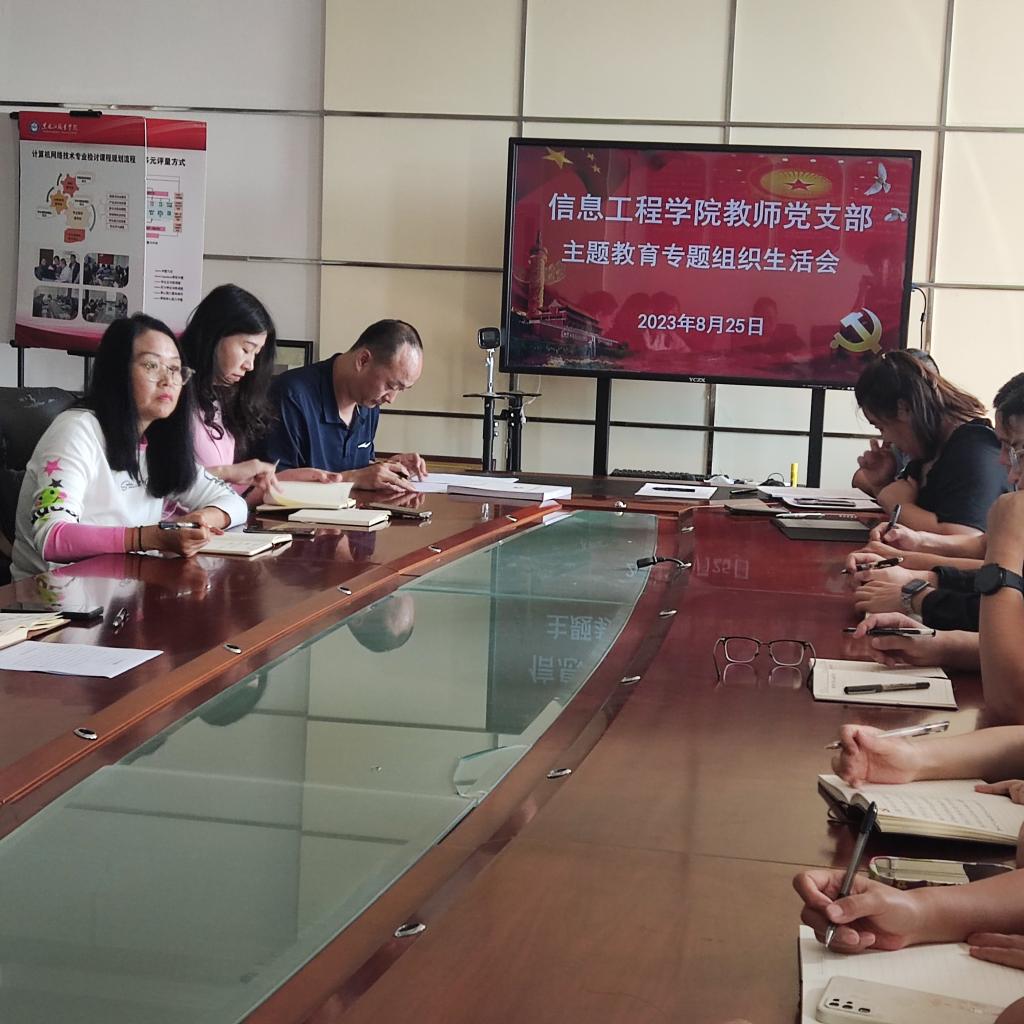 为深入学习贯彻习近平总书记关于主题教育重要讲话和重要指示批示精神,根据《中共中央纪委机关 中共中央组织部 中央学习贯彻习近平新时代中国特色社会主义思想主题教育领导小组关于在学习贯彻习近平新时代中国特色社会主义思想主题教育中开好专题民主生活会的通知》,8月25日9点30分,信息工程学院教师党支部在yl34511线路中心第二校区511会议室召开了主题教育专题组织生活会。本次会议由教师党支部书记卢凤伟主持,支部全体党员参加本次会议。