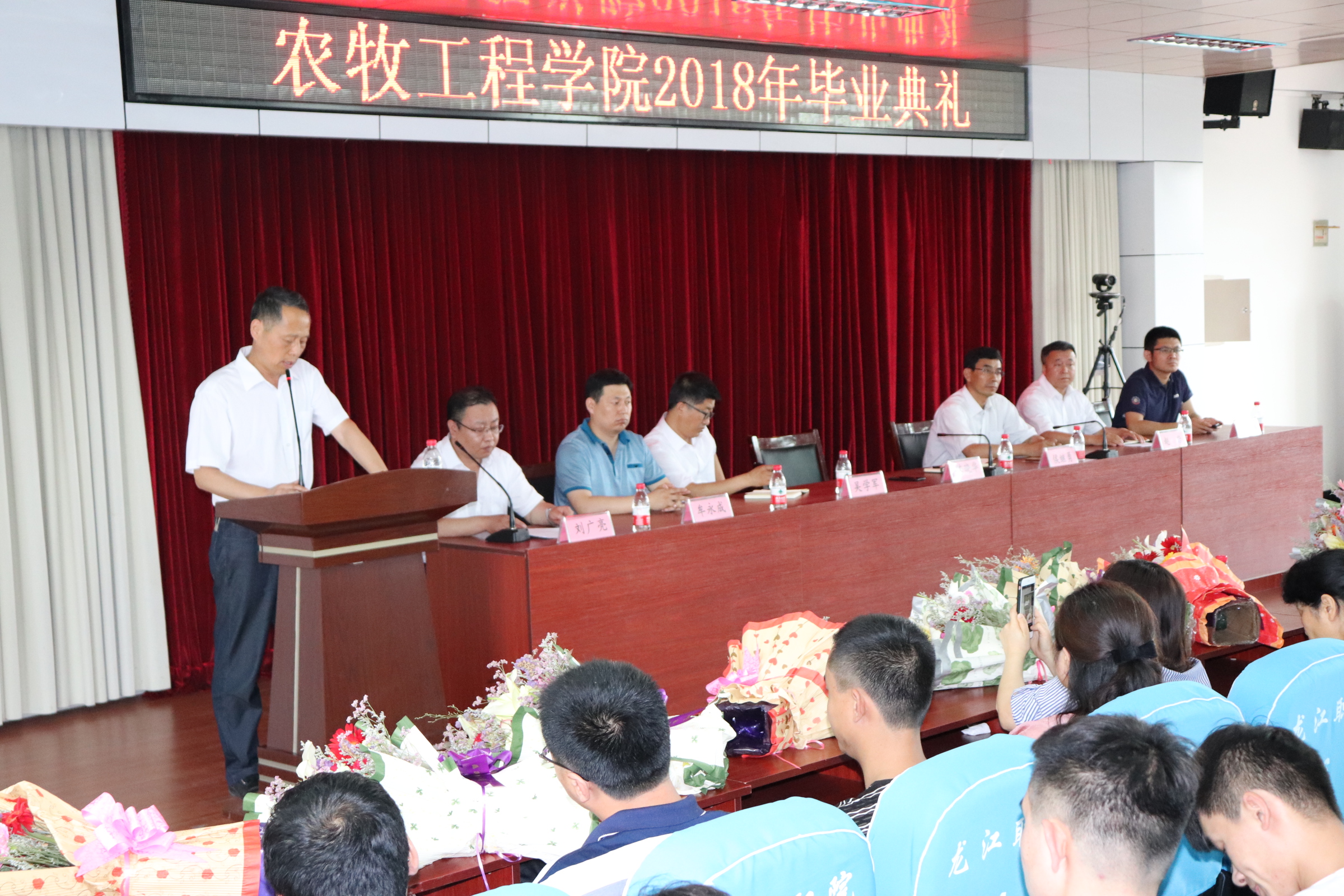 毕业典礼开始,全体起立,奏唱国歌。随后由农牧工程学院副院长赵岩宣读毕业决定,毕业生代表和教师代表先后发言,毕业生代表为恩师献花谢礼。接着侯继勇书记为毕业生上了最后一堂课,全体师生共同观看了为毕业生制作的视频回忆短片。最后农牧工程学院陈晓华院长为2018届毕业生代表颁发毕业证书,并发表了精彩的毕业致辞。毕业典礼在饱含欢笑、掌声、老师诚挚的嘱托和祝愿中,在依依不舍的惜别中圆满结束。
