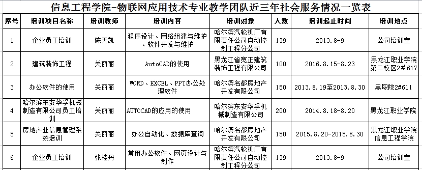 近年来,我专业积极主动的与多家企事业单位合作,开展技术合作、技术开发和管理咨询等活动。目前物联网专业已有3名骨干教师被宇阳园艺研究所聘为业务咨询顾问、先后数次参与农垦经济研究所的《智慧农场》《农垦追溯系统》规划课题,为企业完成物联网应用开发专利6项,参与企业课题2项,开展了多项管理咨询业务。