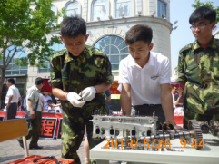 图10-2 2014届学生苗壮带领学生表演快速拆装汽车发动机